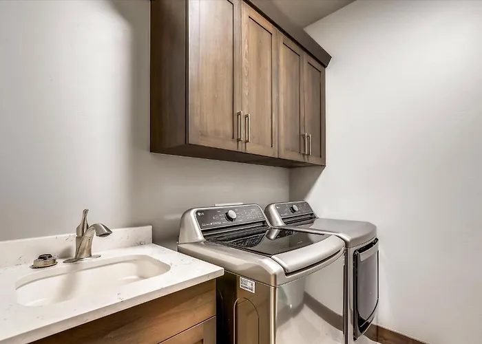 This Breckenridge accommodation comes with a bathroom with a washing machine.